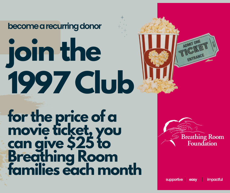 For the price of a movie ticket, you can give $25 to Breathing Room families each month. $25 provides a Breathing Room recipient with a ride to their life-saving cancer treatment.