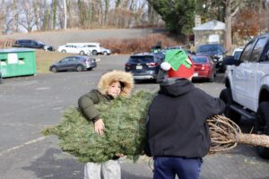 Jim agreed, and even better, his boss was on board. Steve Kehoe and Kehoe Construction sponsored the purchase of 20 Christmas trees and stands, and Rachael and Jim’s family and friends delivered and set them up for Breathing Room families, with additional support from Dave’s Trees at the North Penn VFW in Glenside.